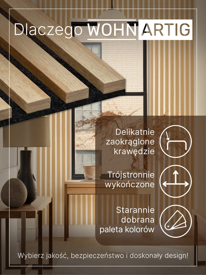 🔊 Lepsza akustyka i estetyka – panele redukują pogłos, jednocześnie dodając wnętrzu elegancji i głębi