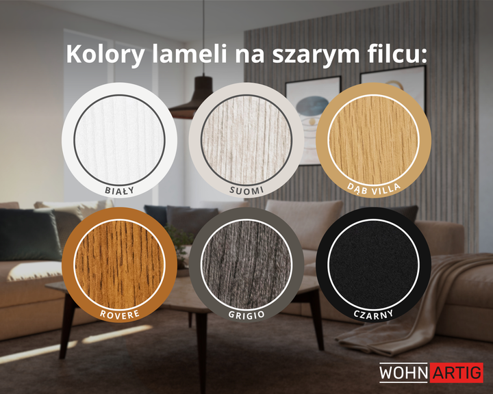 ▫️ Kolory na szarym filcu: Biały, Suomi, Dąb Villa, Rovere, Grigio, Czarny