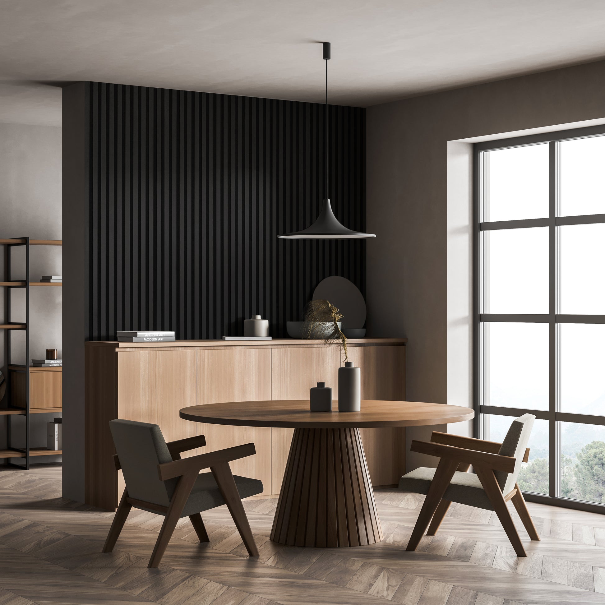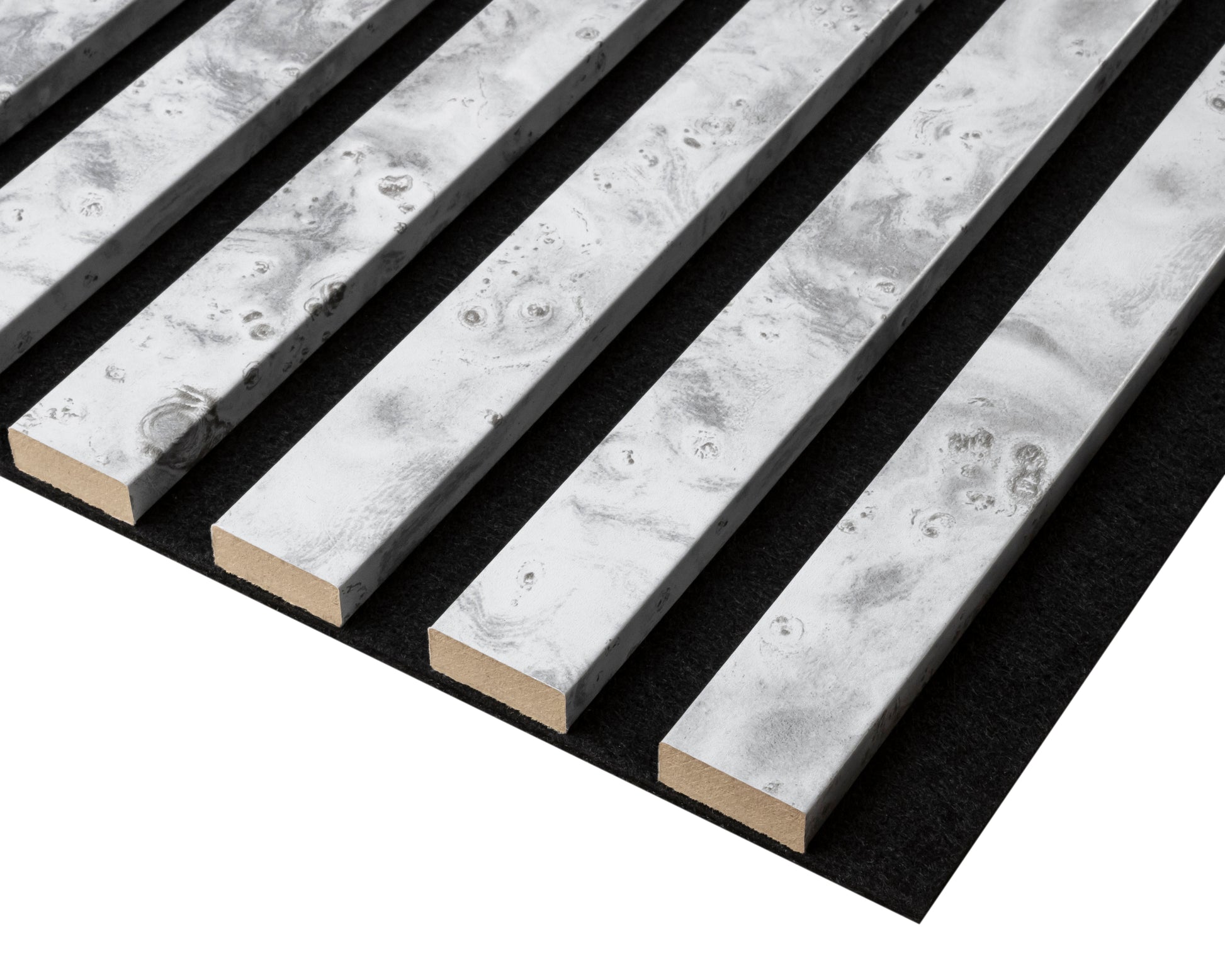 Lamele zamontowane na dźwiękochłonnym filcu tłumią pogłos i niwelują echo – idealne do przestrzeni, w których chcesz się skupić, odpocząć lub rozmawiać bez zakłóceń.