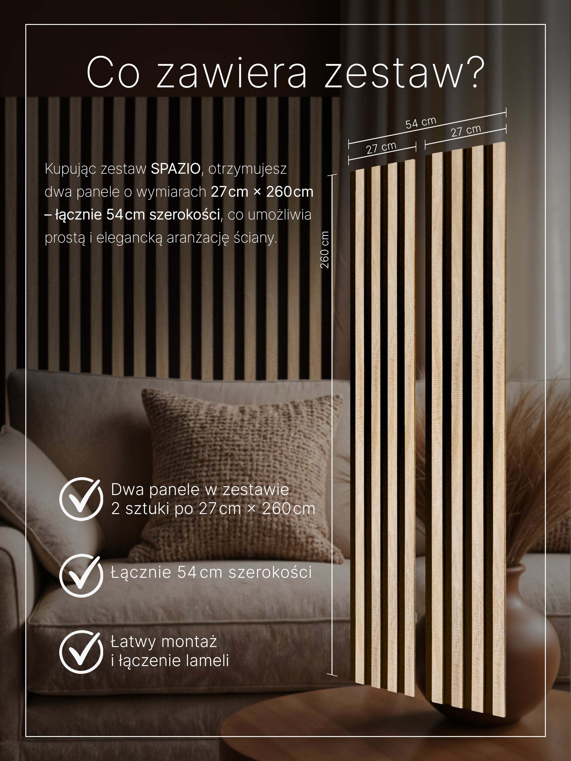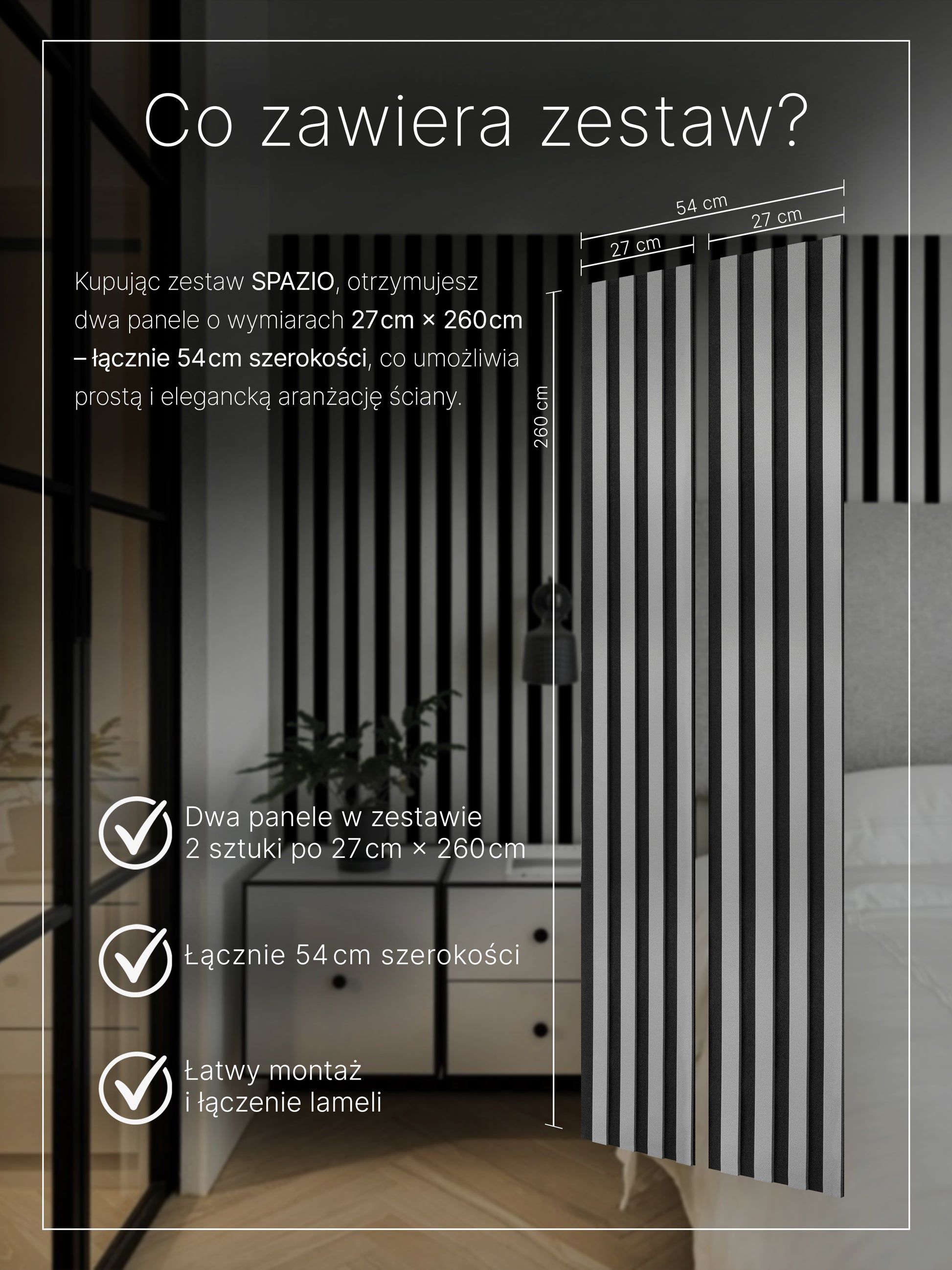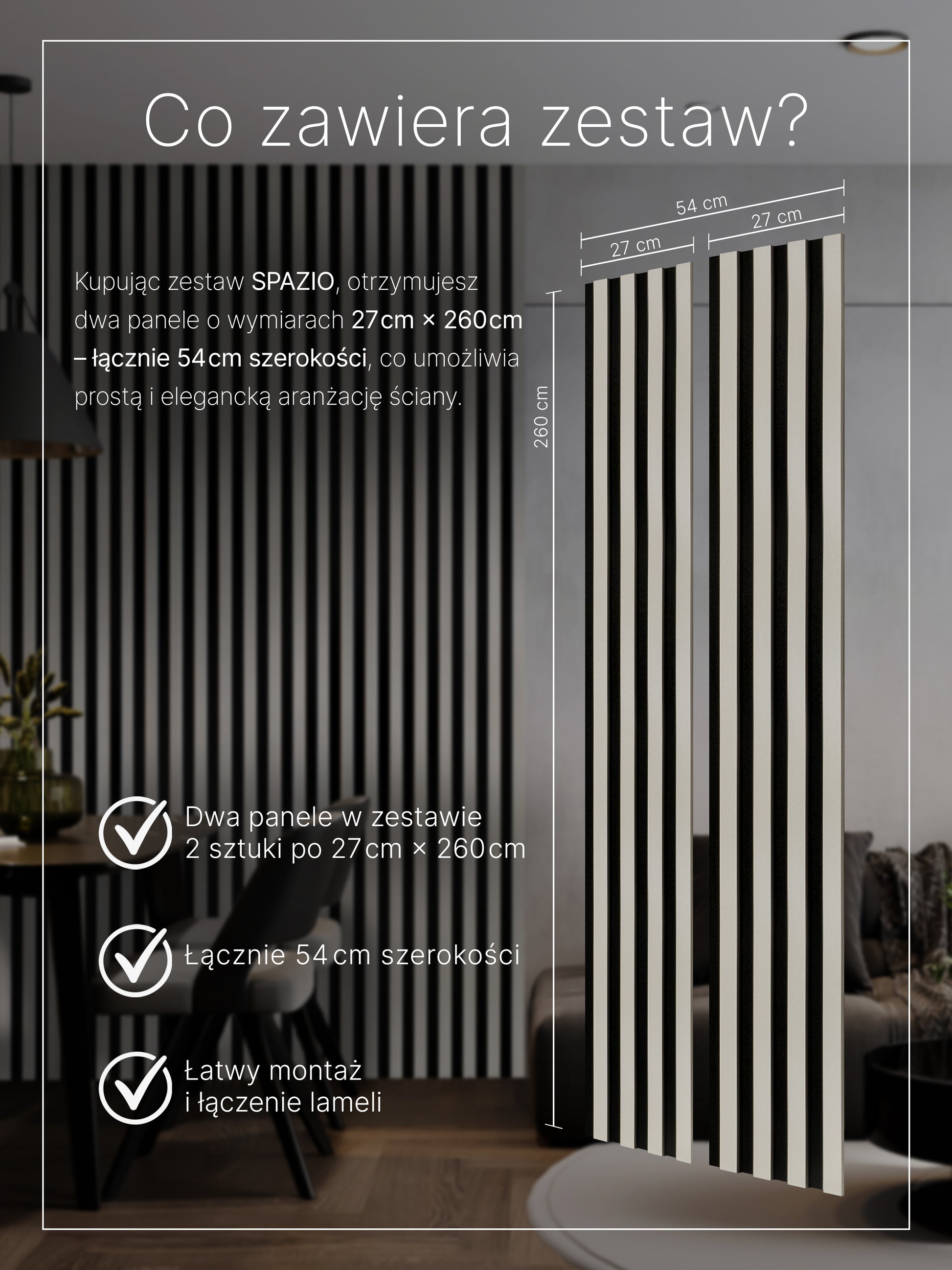 Dekoracyjny panel akustyczny SPAZIO 540 x 2600 mm (zestaw 2 szt. 270 x 2600 mm)