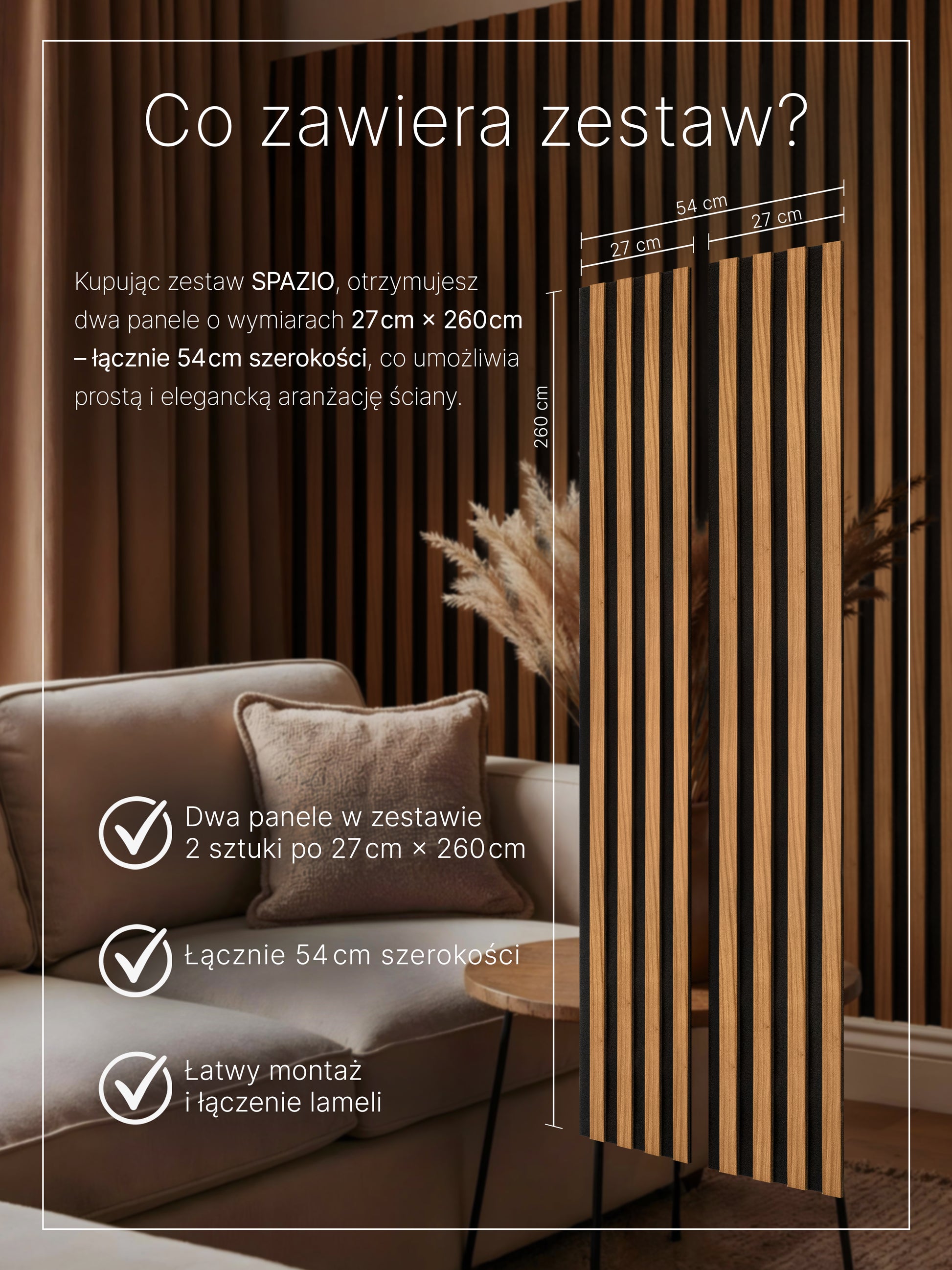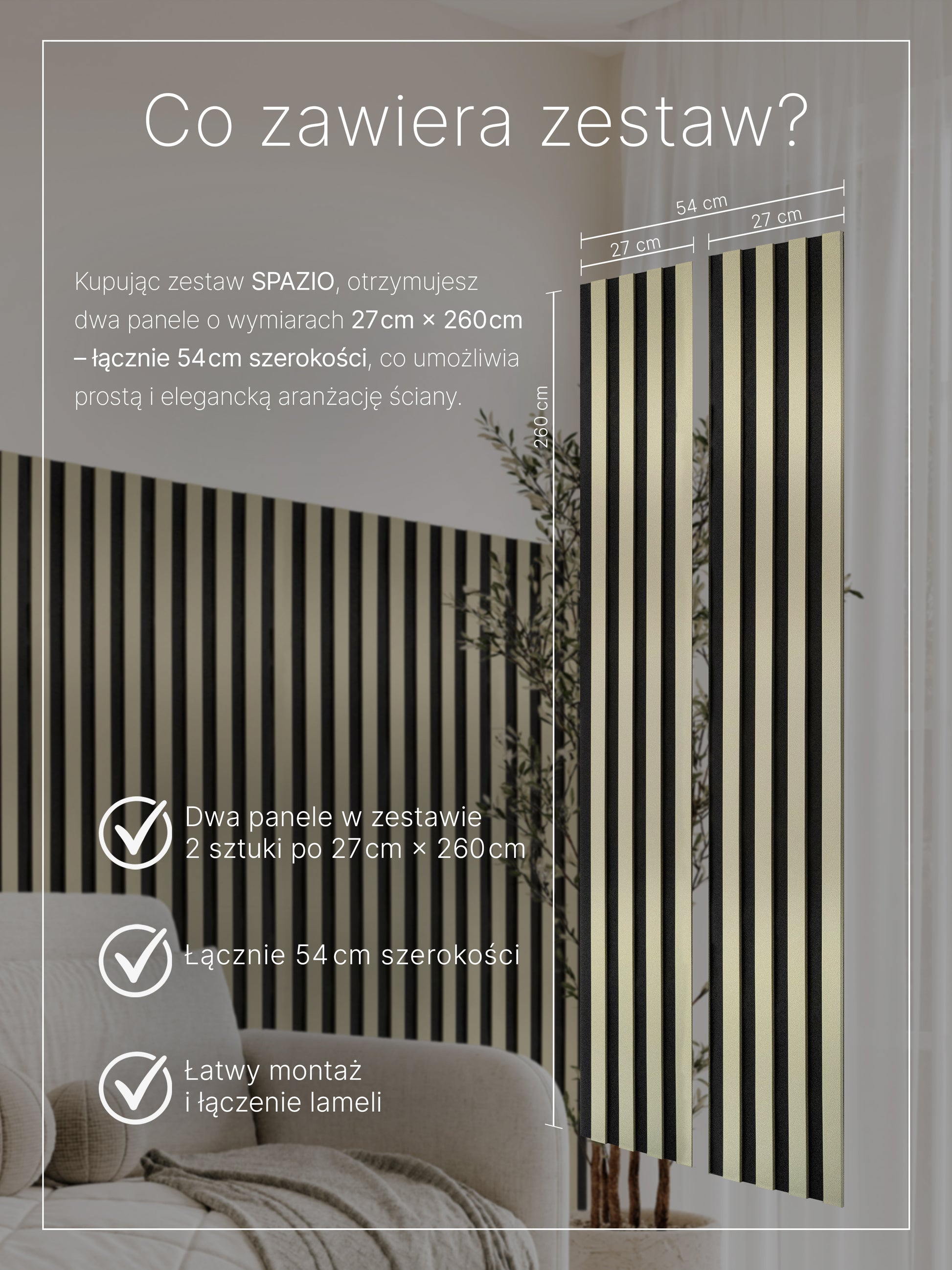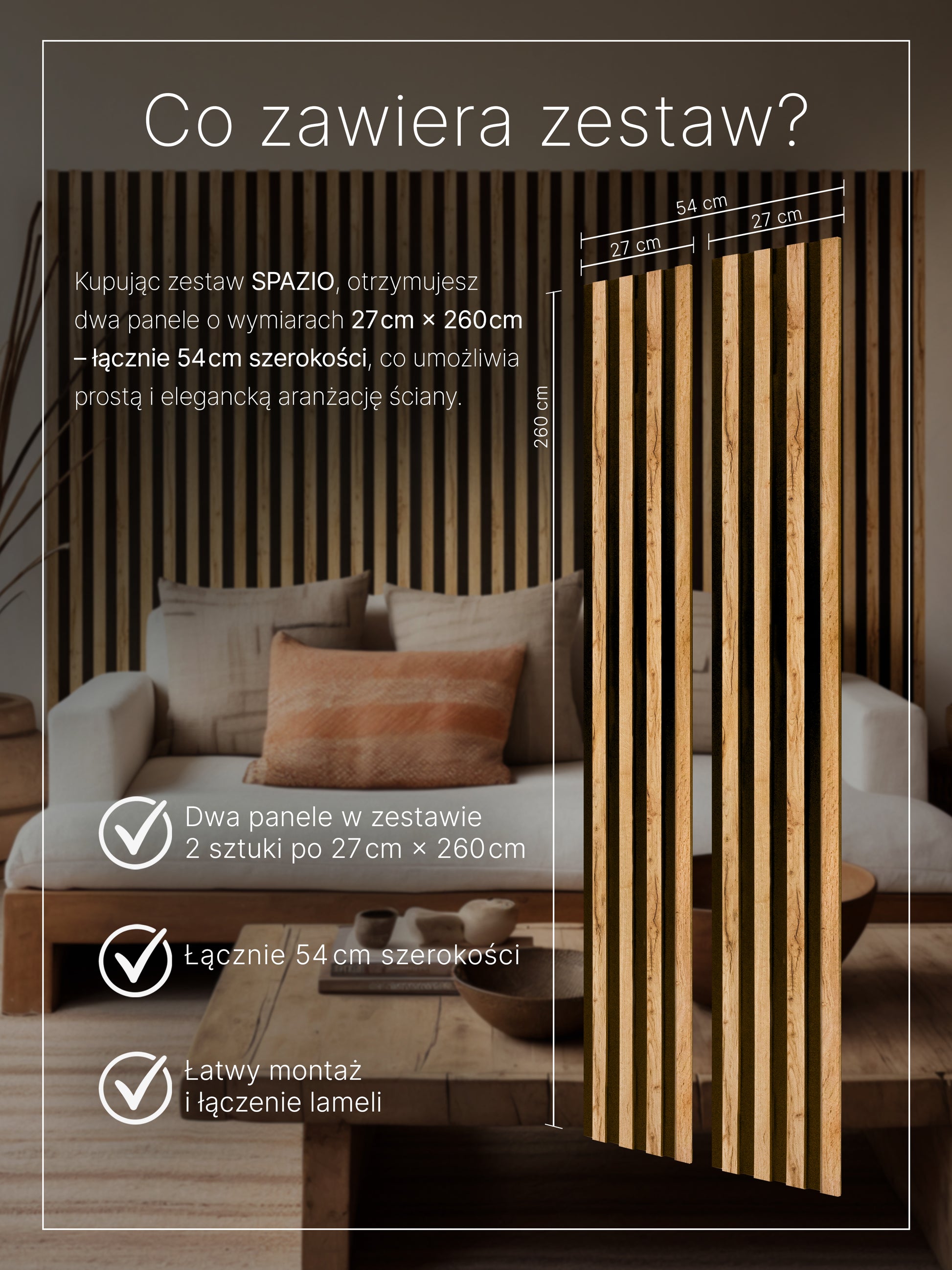 Dekoracyjny panel akustyczny SPAZIO 540 x 2600 mm (zestaw 2 szt. 270 x 2600 mm)