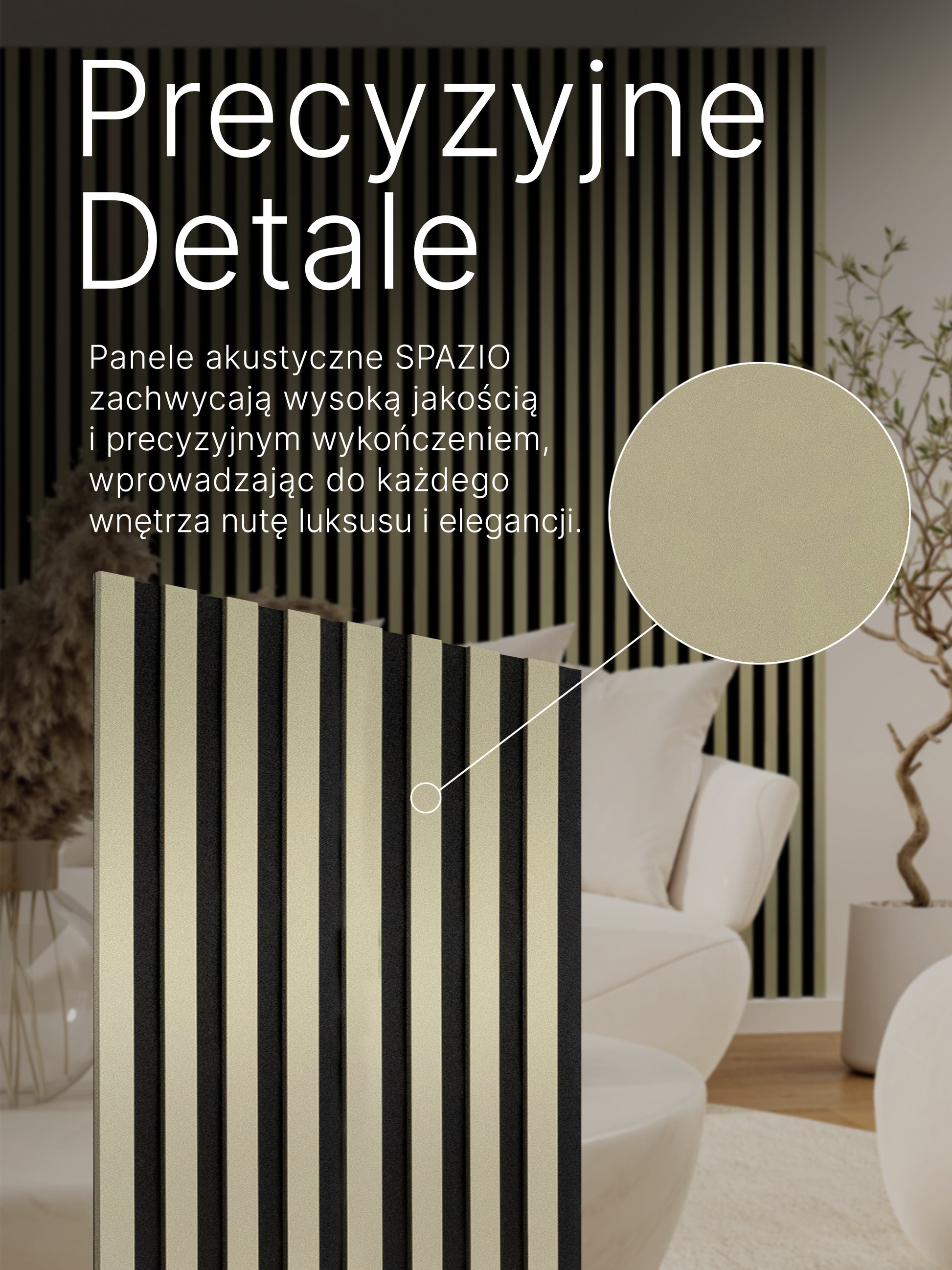 Struktura lameli na dźwiękochłonnym filcu redukuje pogłos i poprawia akustykę – idealna do salonu, biura, studia czy domowego gabinetu.