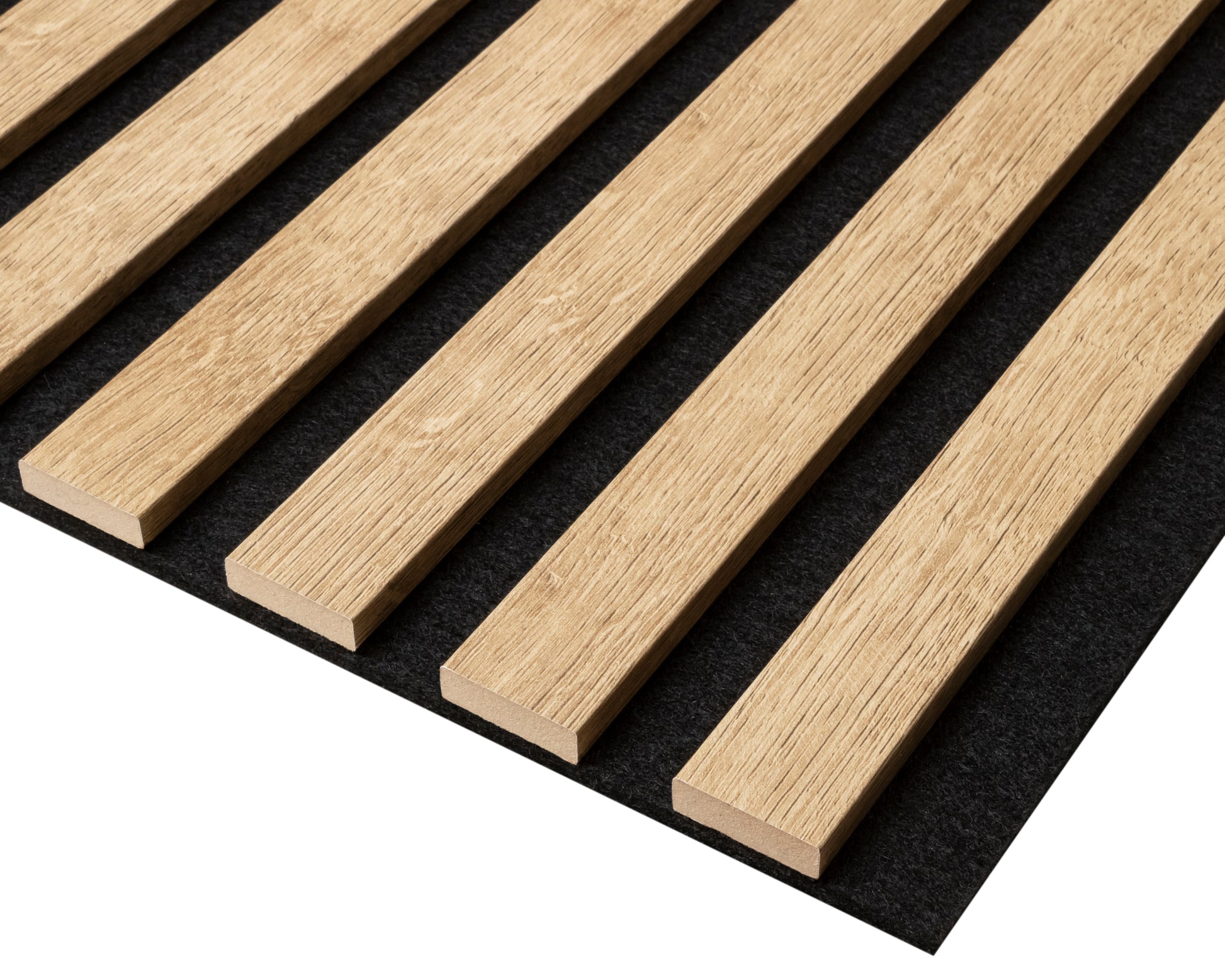 Struktura lameli na dźwiękochłonnym filcu skutecznie redukuje echo i pogłos, poprawiając akustykę pomieszczenia i wpływając na przyjemniejsze codzienne funkcjonowanie.