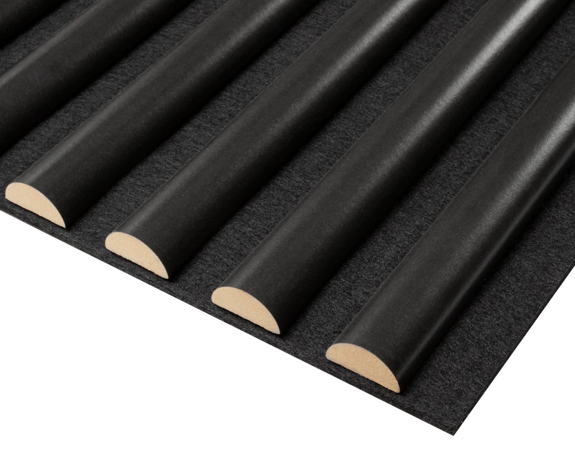 Dekoracyjna struktura lameli z wysokiej jakości filcu skutecznie redukuje pogłos, poprawiając akustykę – idealnie sprawdza się w salonie, biurze, studiu lub domowym gabinecie.