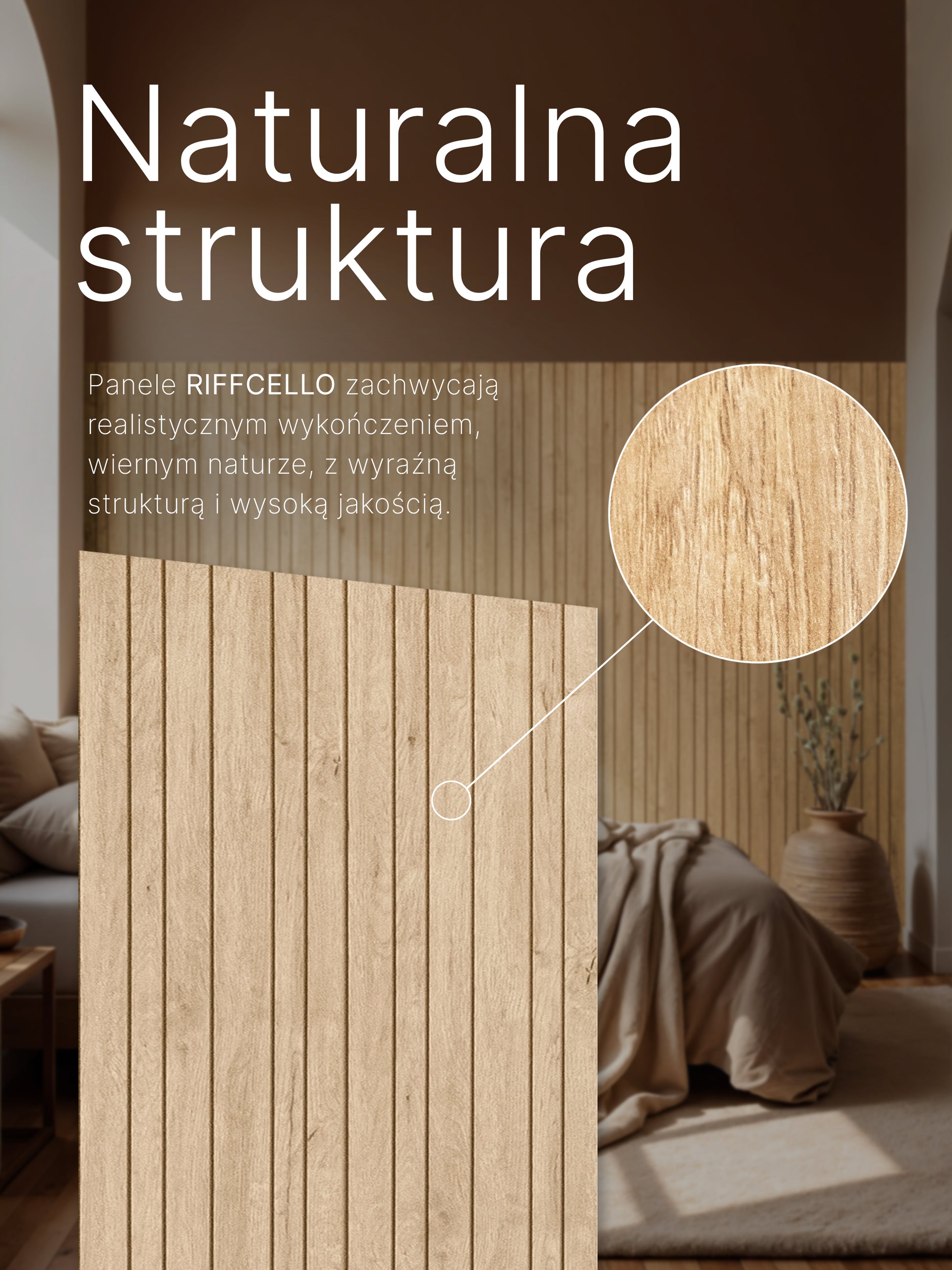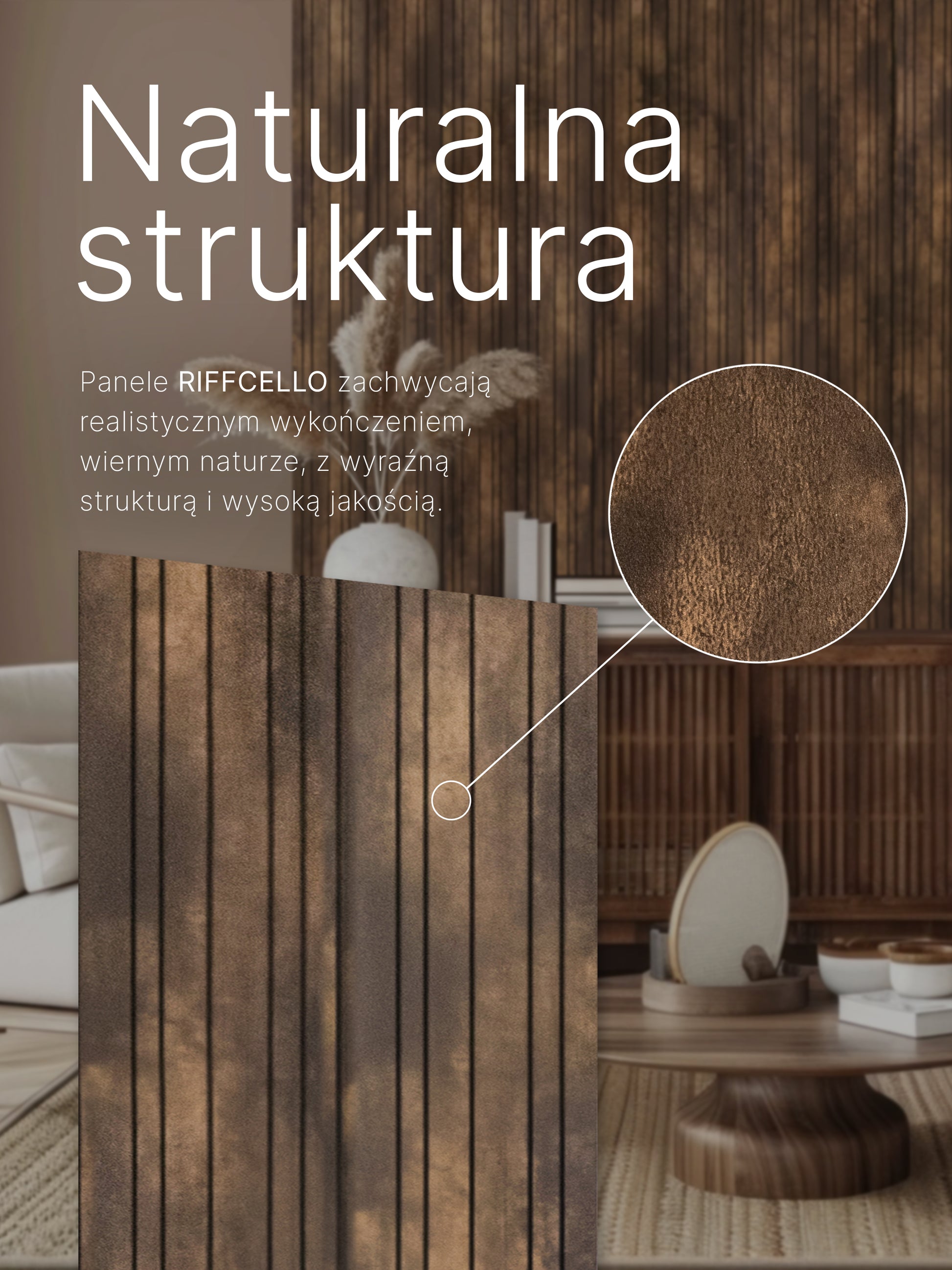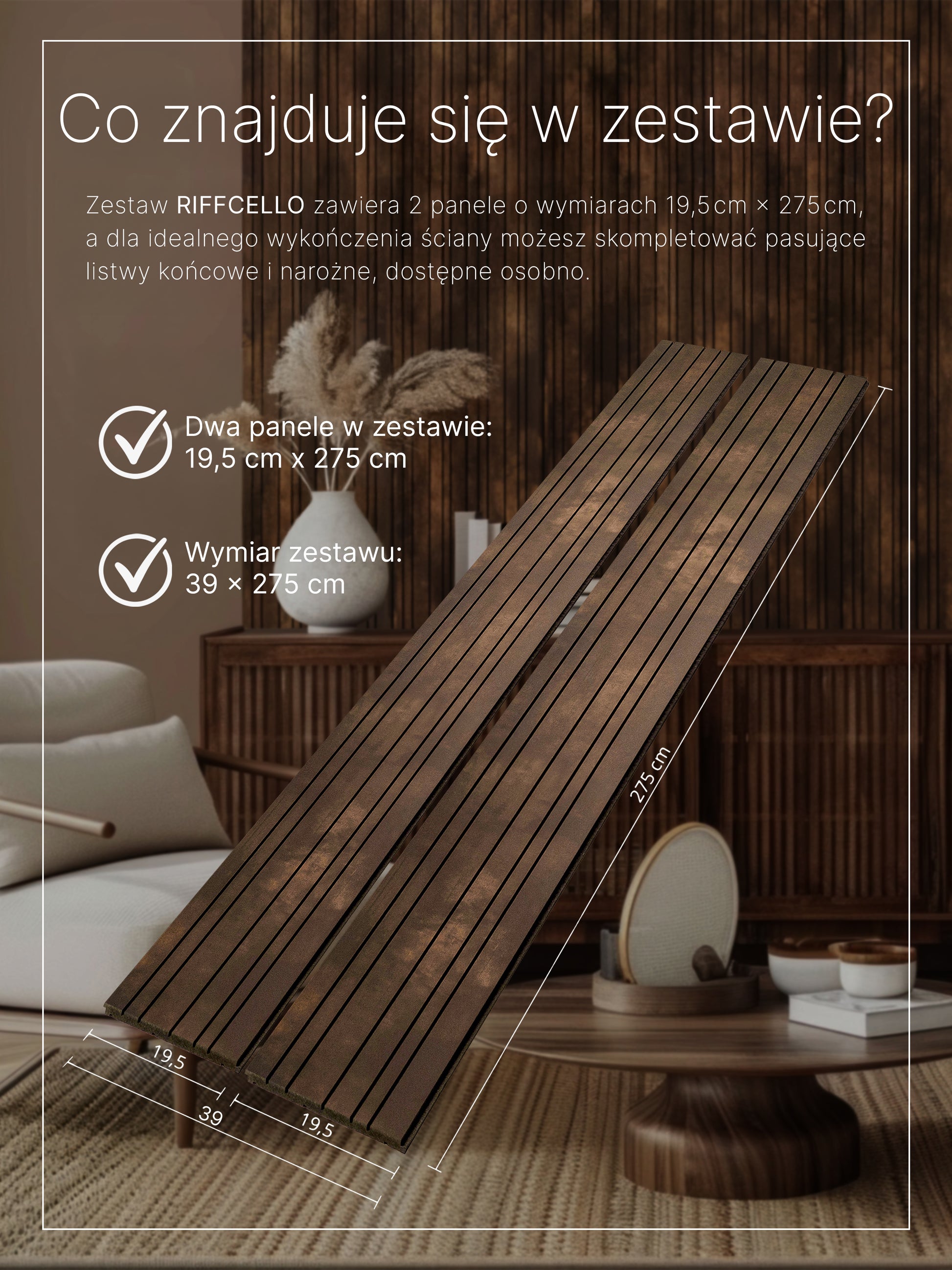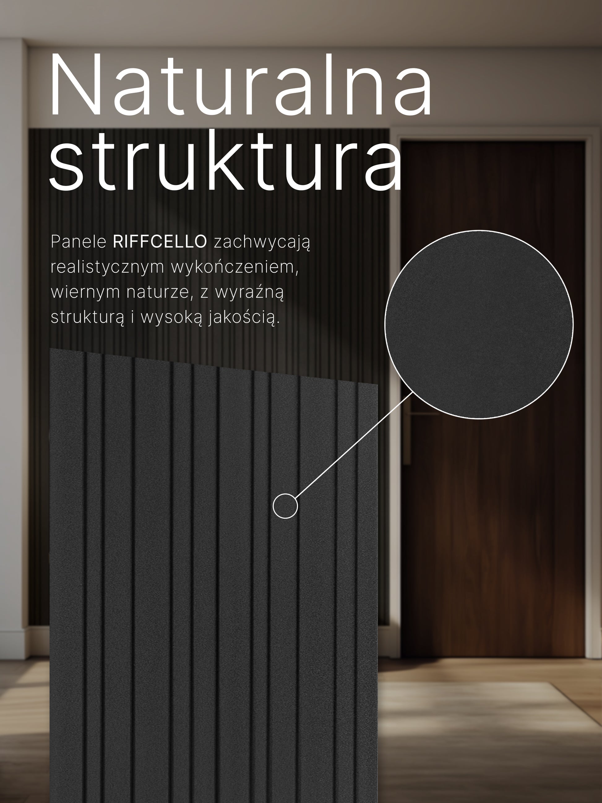 Elegancki design – frezowane lamele nadają ścianie wyjątkowy charakter i subtelny efekt 3D.