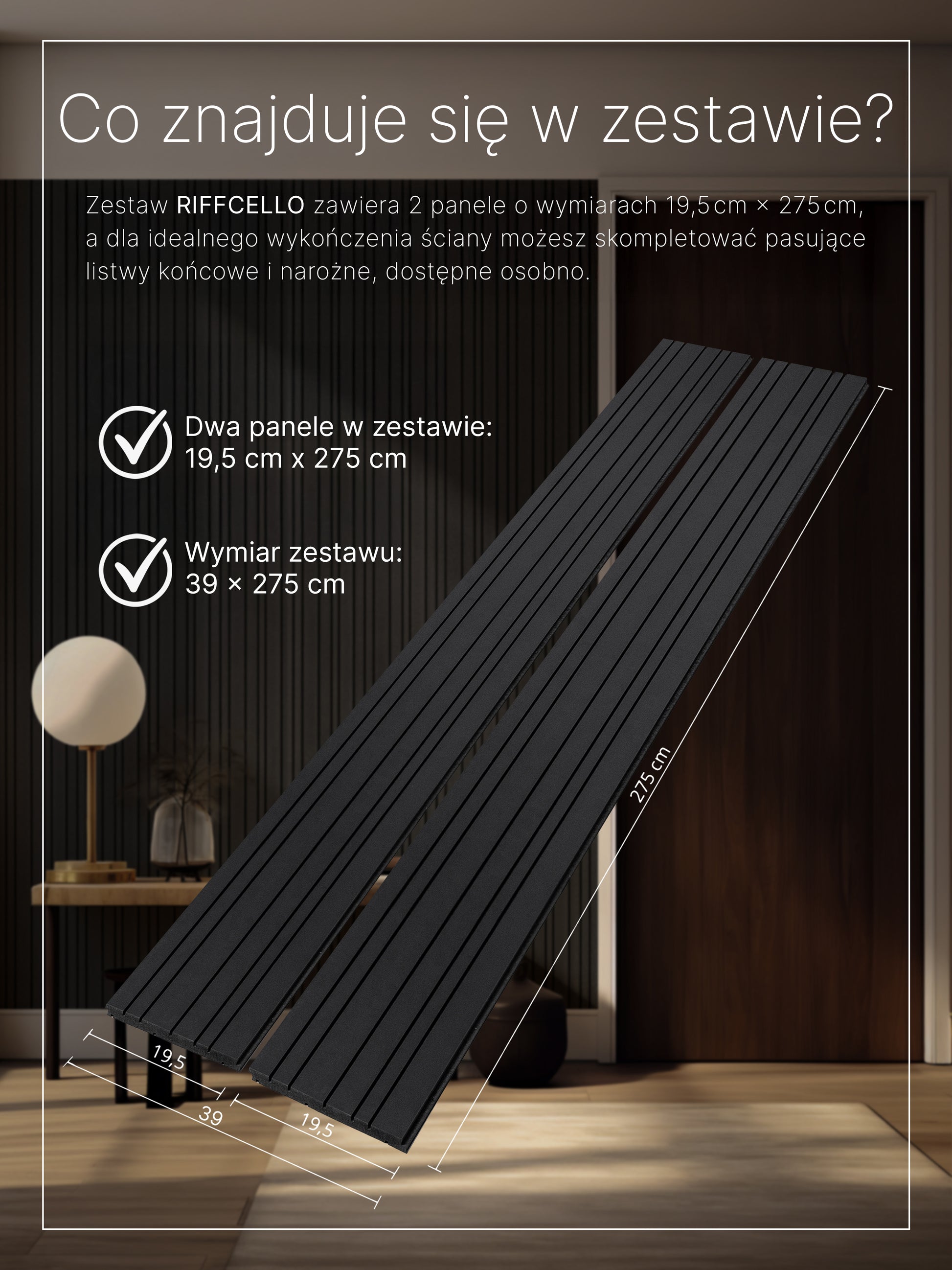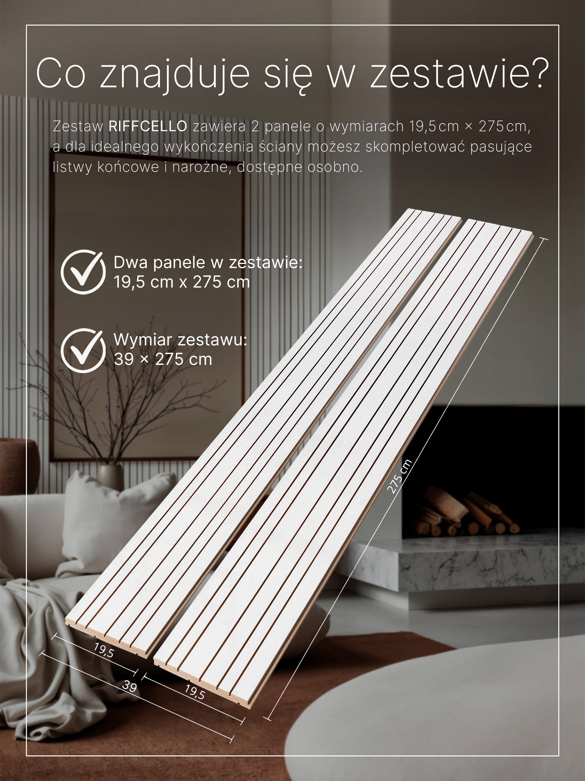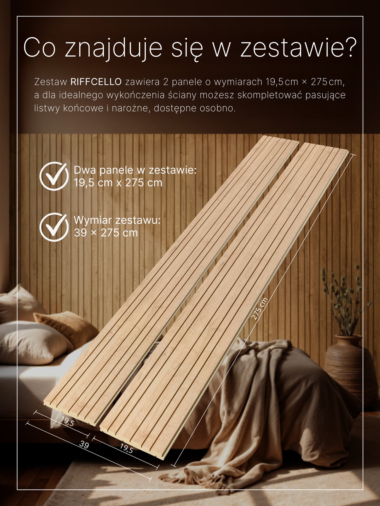 Szukasz dekoracyjnych, frezowanych paneli bez widocznych łączeń? Zestaw RIFFCELLO zawiera 2 panele po 195 × 2750 mm, już zamontowane na płycie HDF – szybkie, praktyczne i stylowe rozwiązanie.