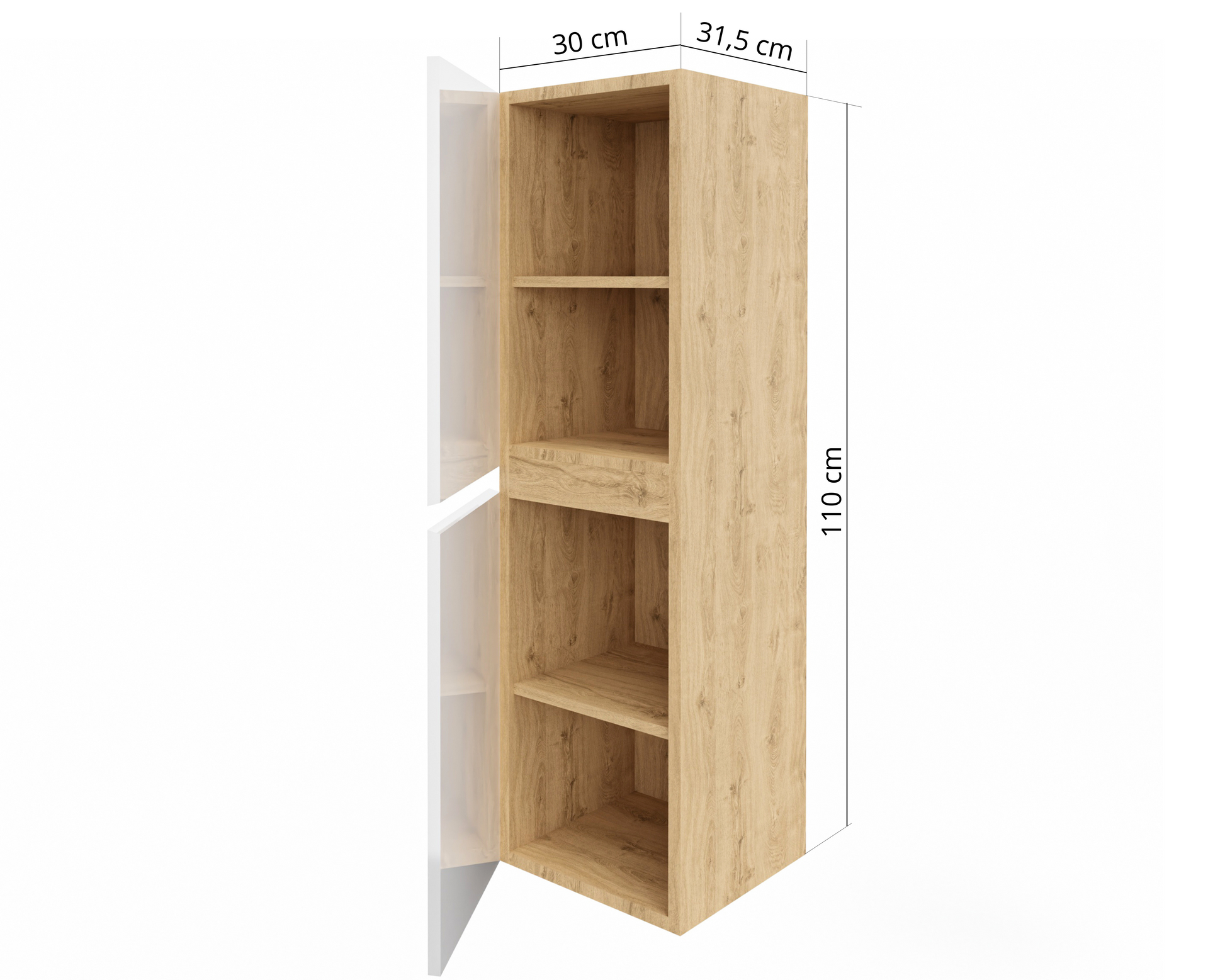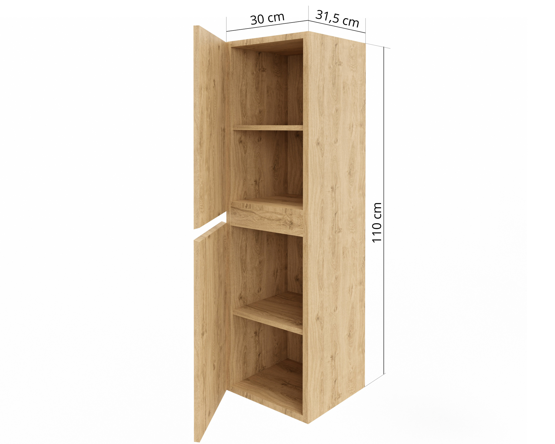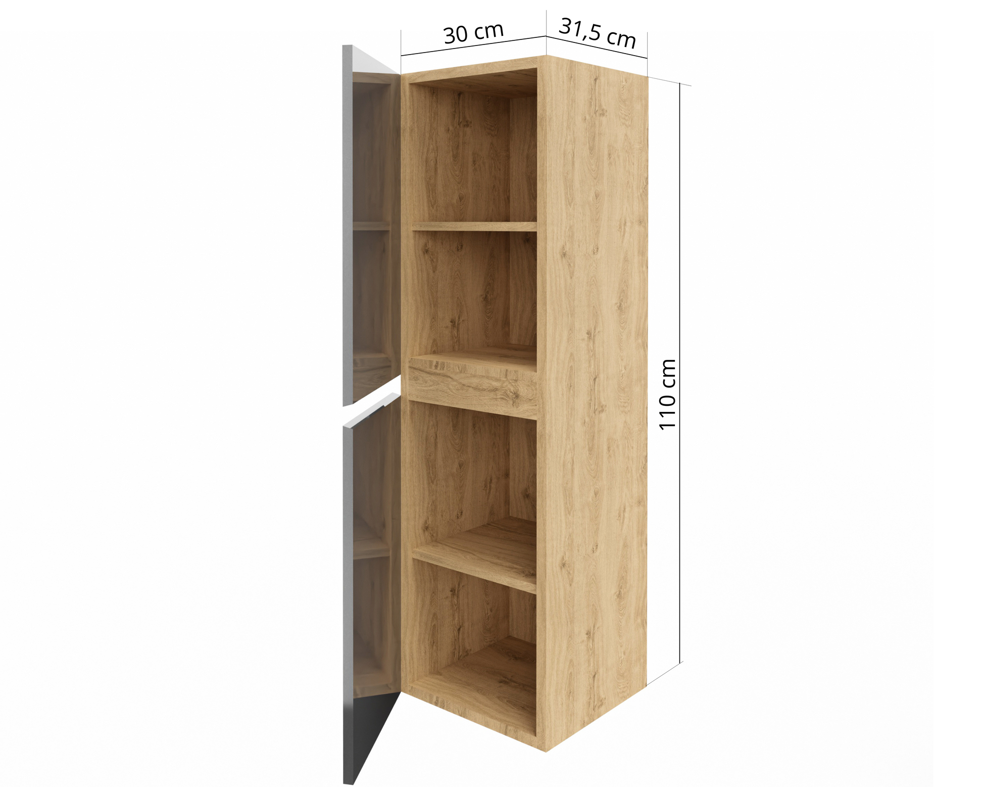 Słupek łazienkowy STELLA to stylowy, wiszący mebel, który świetnie sprawdzi się zarówno w małych, jak i średnich łazienkach. Dzięki kompaktowym wymiarom 30 x 31,5 x 110 cm oferuje zaskakująco dużo miejsca do przechowywania – za dwojgiem drzwiczek ukryte są cztery funkcjonalne półki na ręczniki, kosmetyki czy środki czystości.