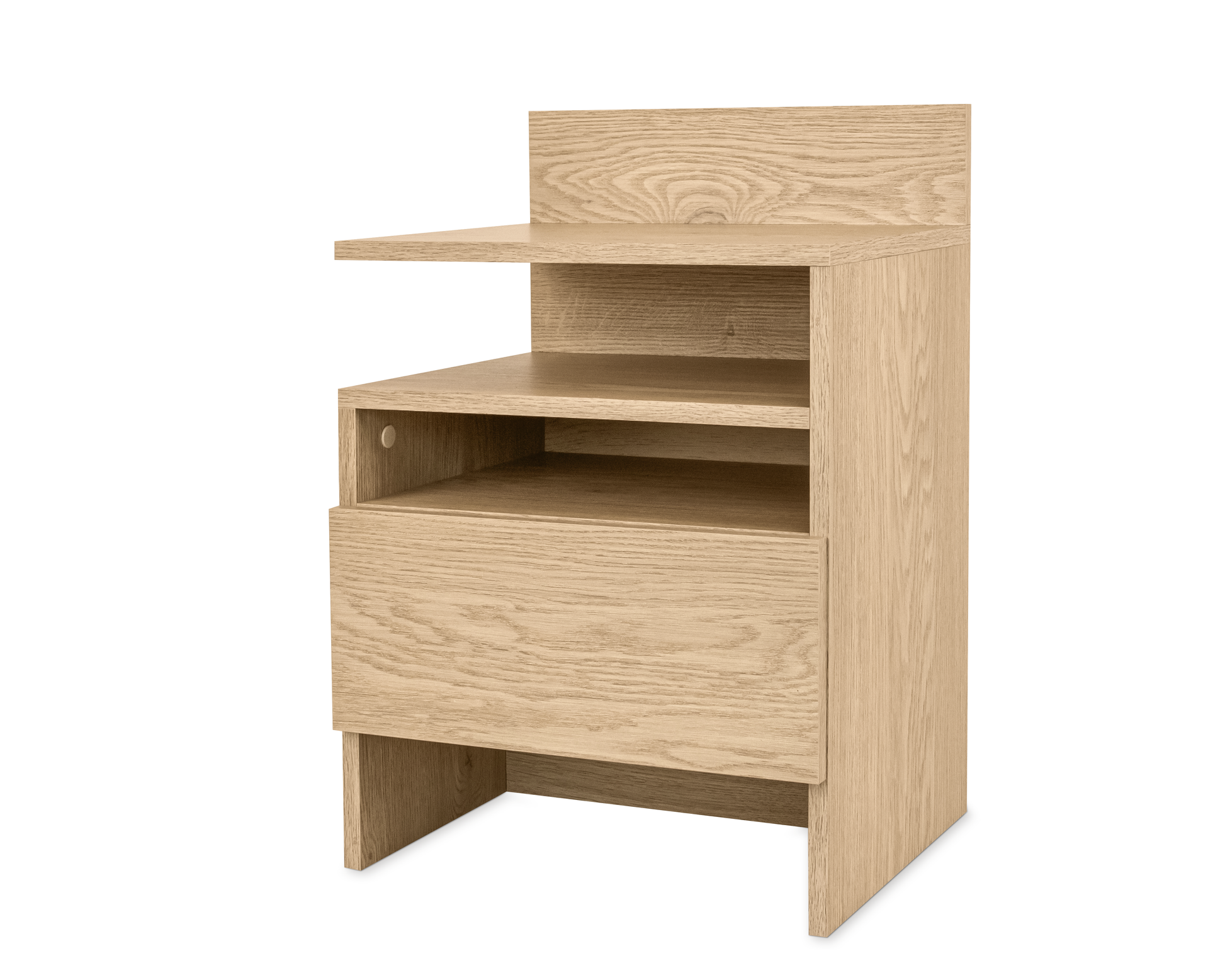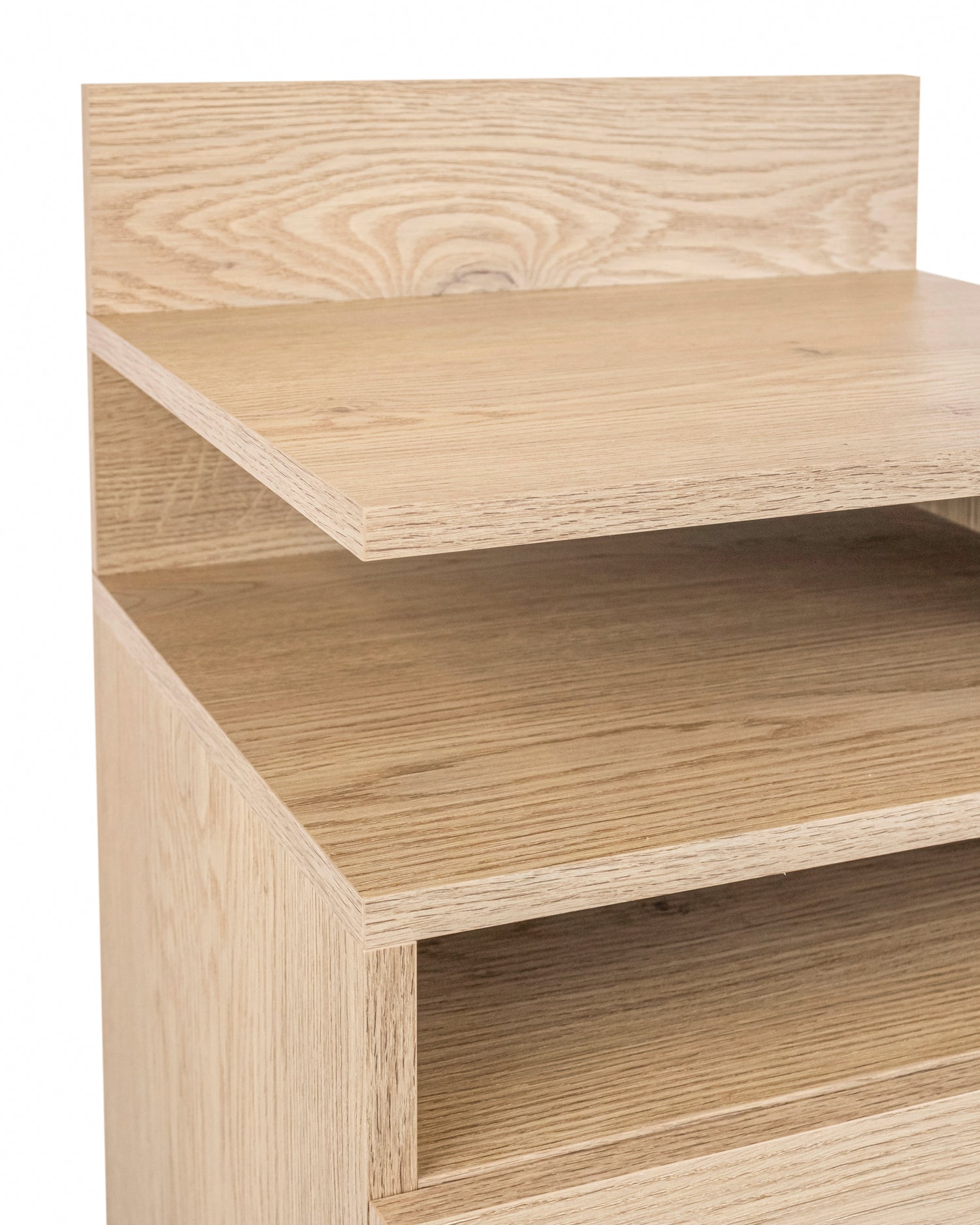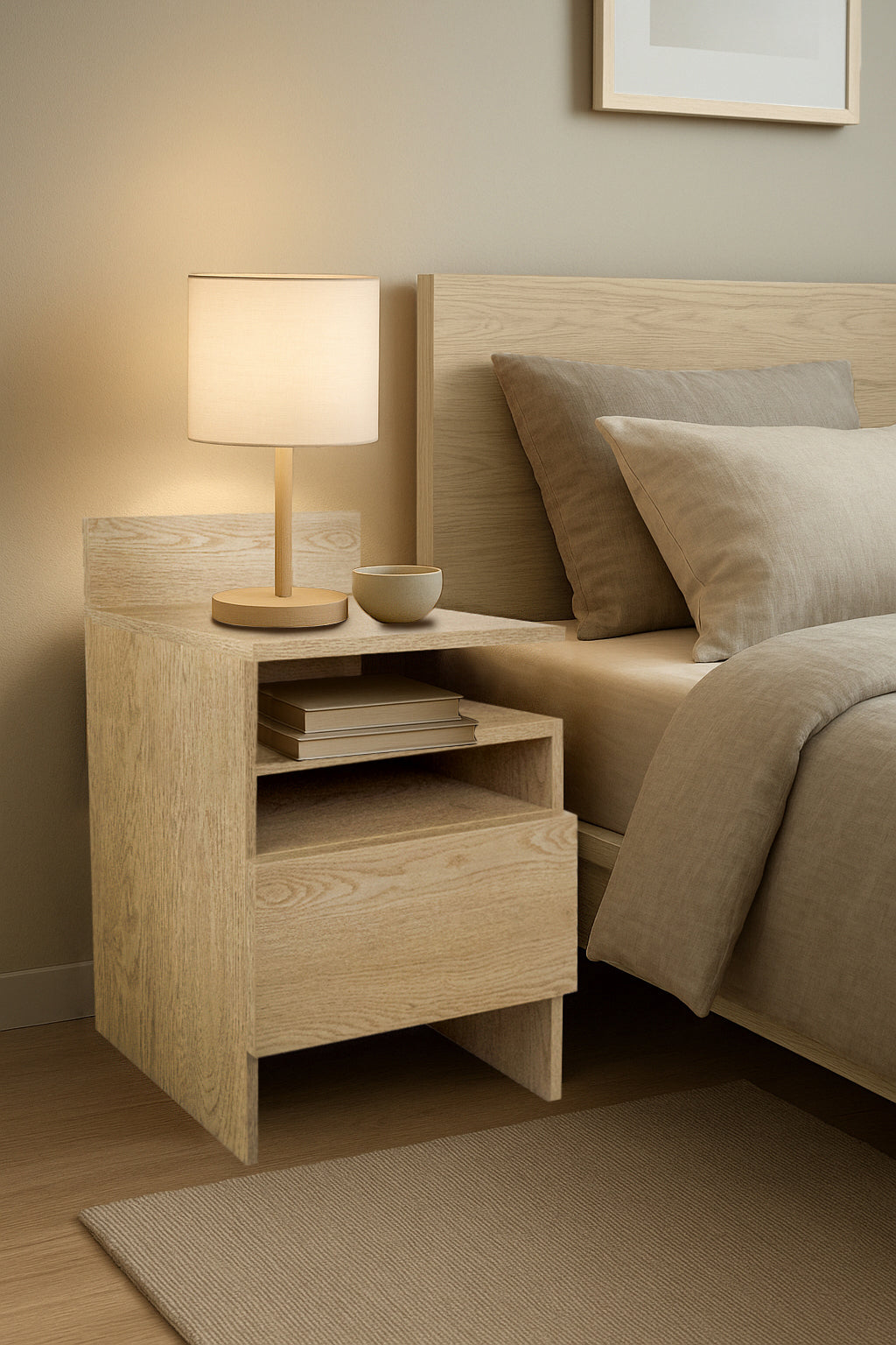 🔸Naturalna kolorystyka w odcieniu drewna sprawia, że szafka nocna doskonale wpasuje się w nowoczesne, klasyczne oraz skandynawskie wnętrza. Pojemna szuflada i trzy półki zapewniają wygodne miejsce na książki, telefon, lampkę nocną czy inne drobiazgi, które chcesz mieć zawsze pod ręką.
