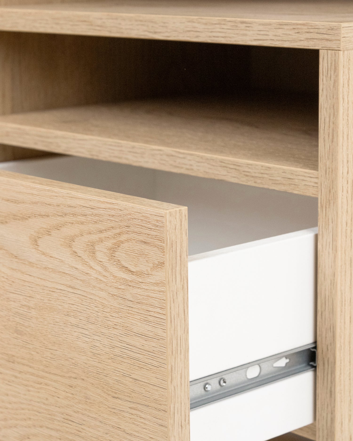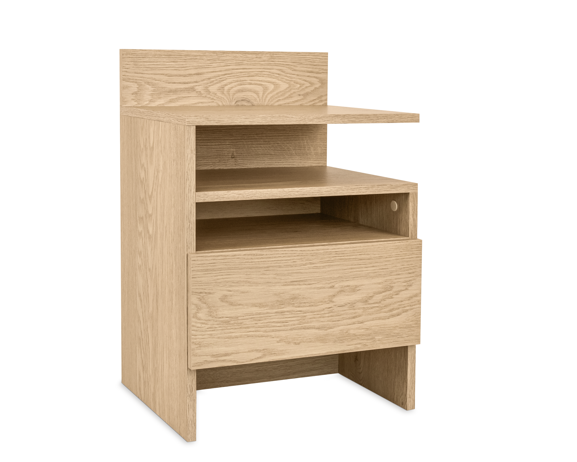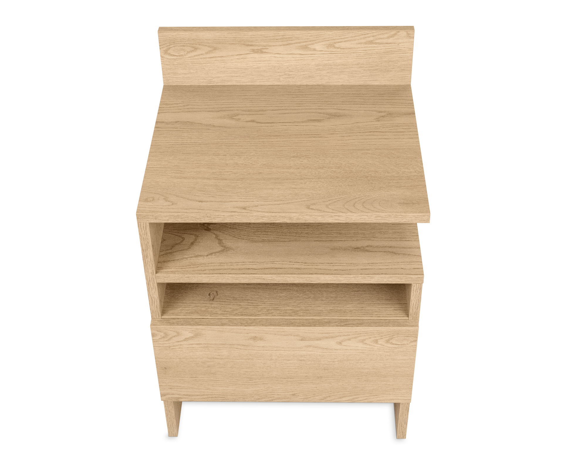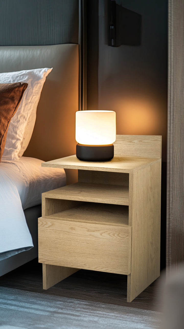 🔸Naturalna kolorystyka w odcieniu drewna sprawia, że szafka nocna doskonale wpasuje się w nowoczesne, klasyczne oraz skandynawskie wnętrza. Pojemna szuflada i trzy półki zapewniają wygodne miejsce na książki, telefon, lampkę nocną czy inne drobiazgi, które chcesz mieć zawsze pod ręką.