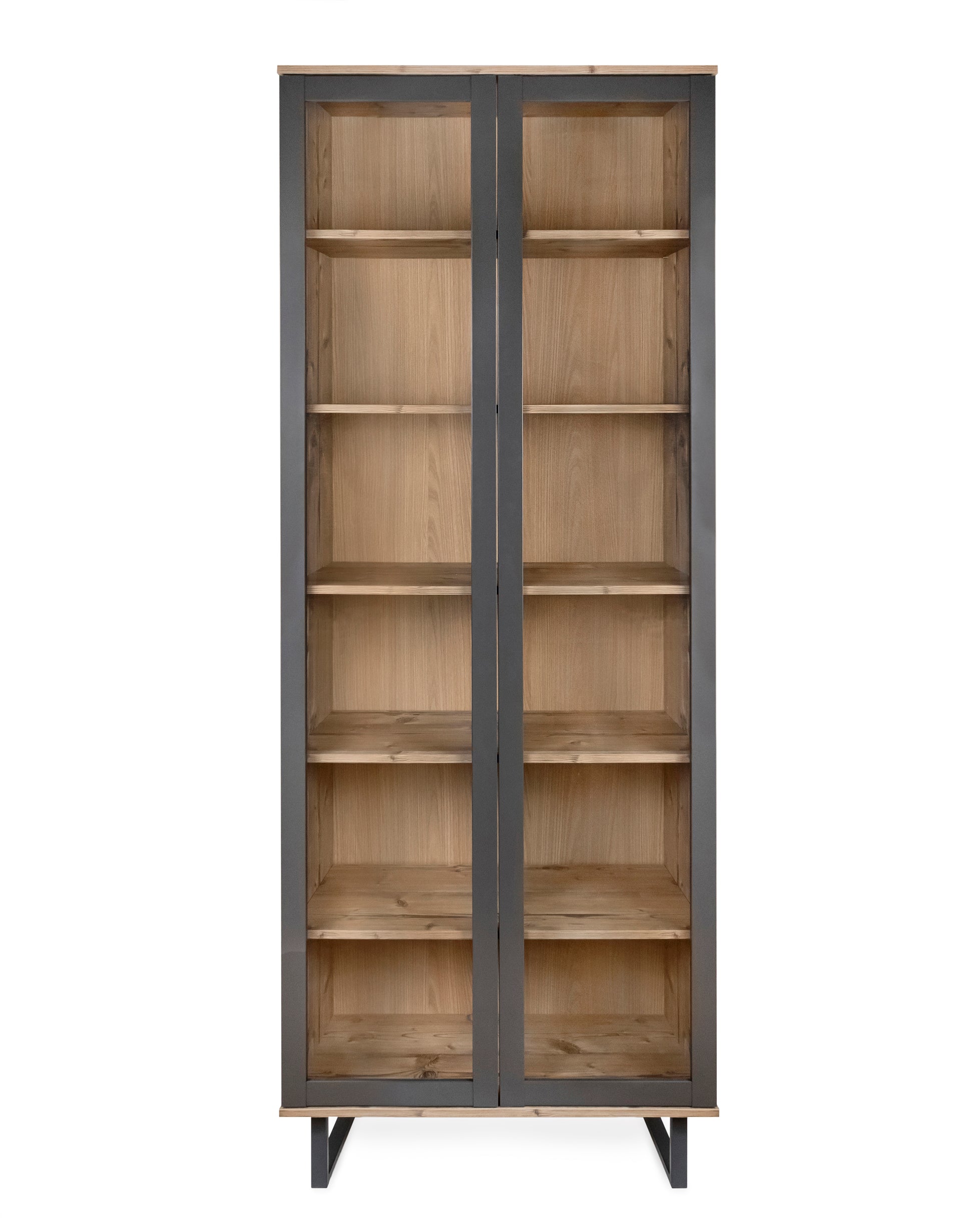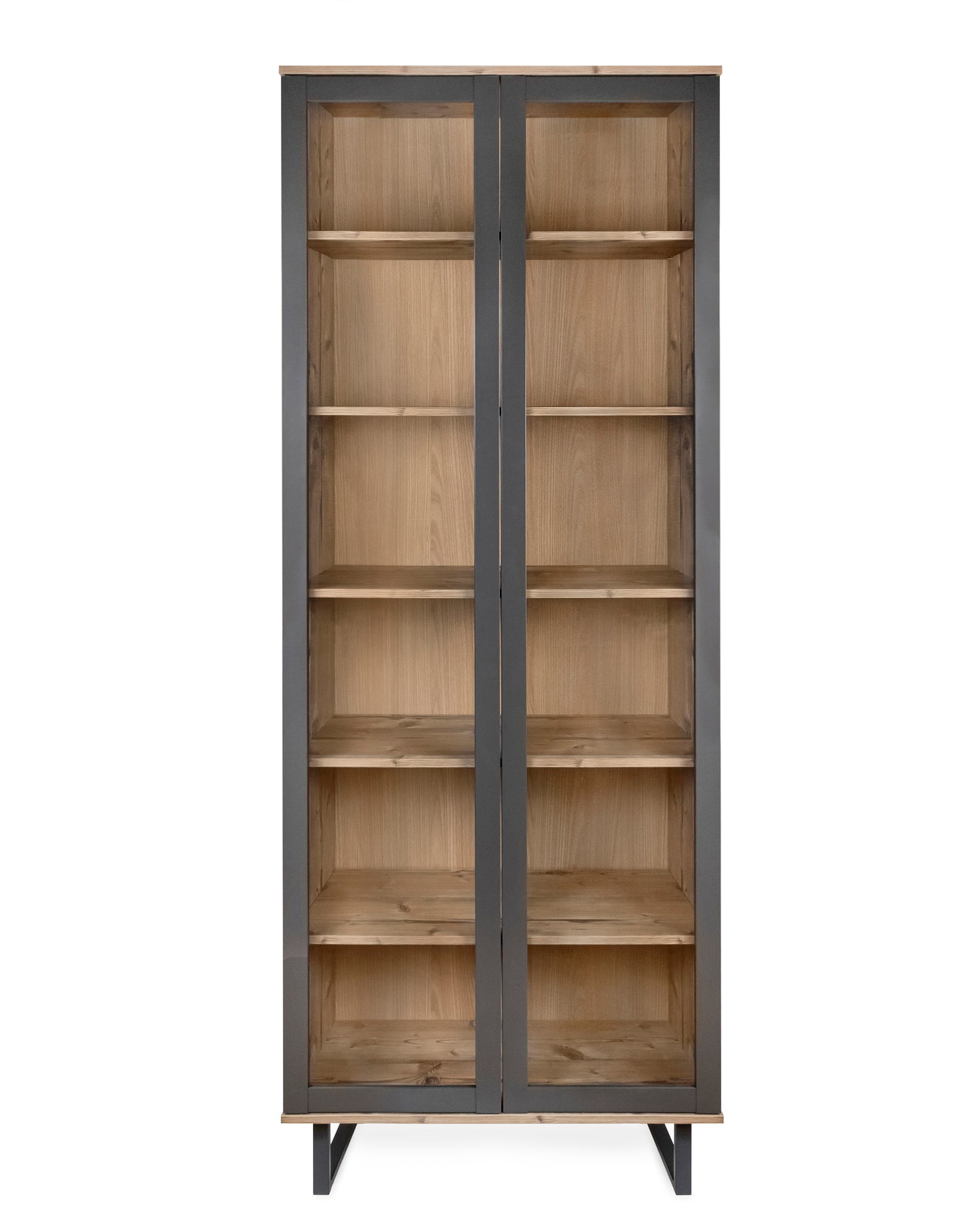 🔍 Szklane drzwi z metalową ramą – idealne do ekspozycji książek, dekoracji lub ceramiki
